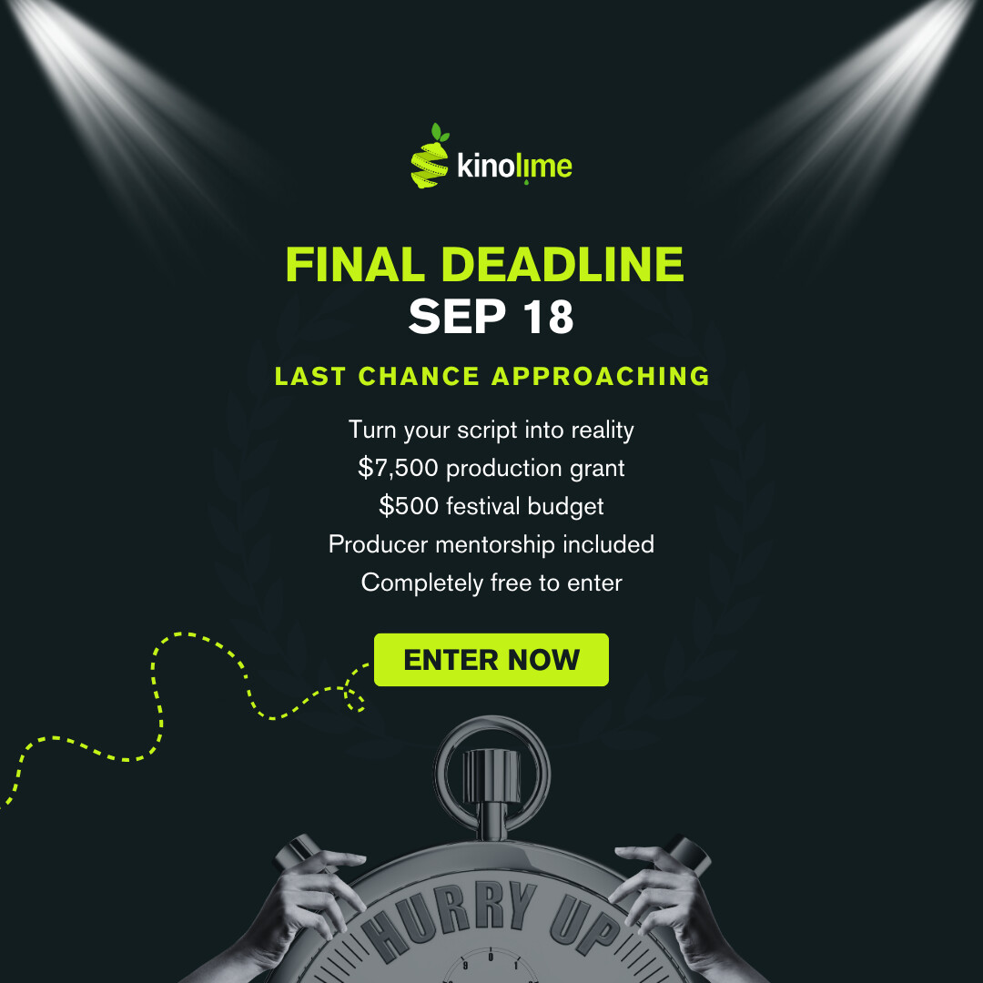Kinolimers, our submission window is not halfway done – and we’re already accepted over ONE THOUSAND ENTRIES. With less than 10 DAYS remaining until submissions SLAM SHUT, don’t miss out on your chance to enter, compete, and fingers crossed-- win BIG!